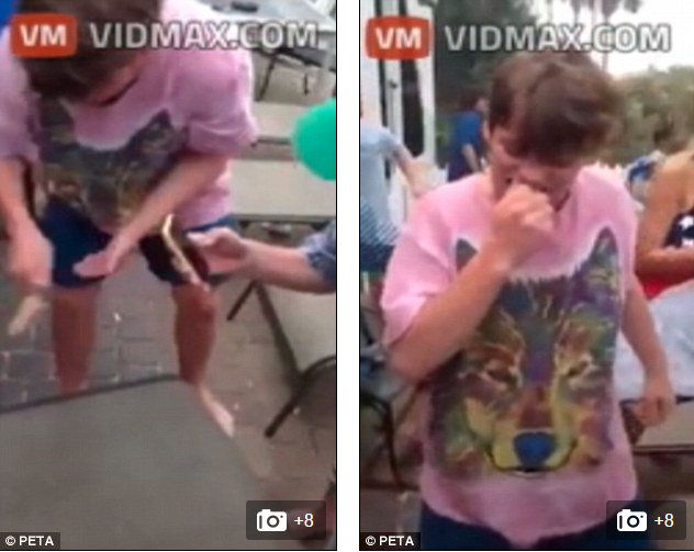 事後將倉鼠的頭吐在地上,還不斷大笑,行為超冷血。圖擷自Dailymail每日郵報(03/29)