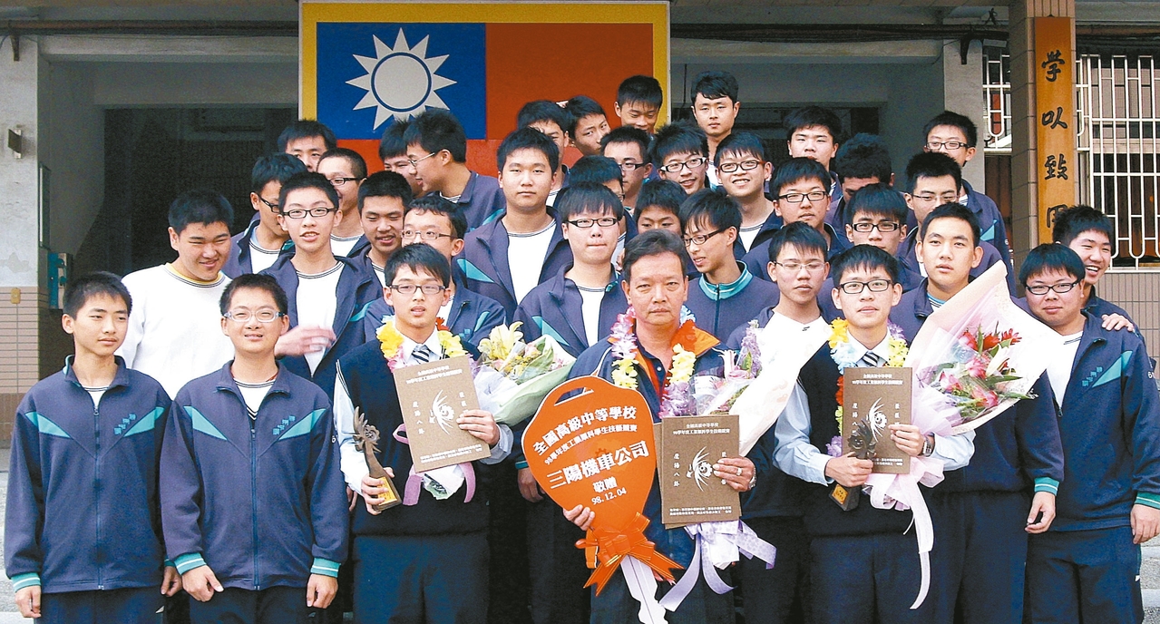 楊錫欣(前排中)帶領許多弱勢技職生精進專業技術、揚名國際,被教育部認定為教育家典範人物。 圖/教育部提供