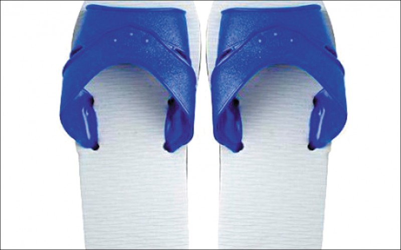 長期關注PVC議題的看守台灣協會秘書長謝和霖肯定環保署「往前走」,但PVC產品遍布於生活中,希望環保署「再走快一點」,最好全面禁用PVC。圖為藍白拖也是屬於PVC材質。(看守台灣協會提供)