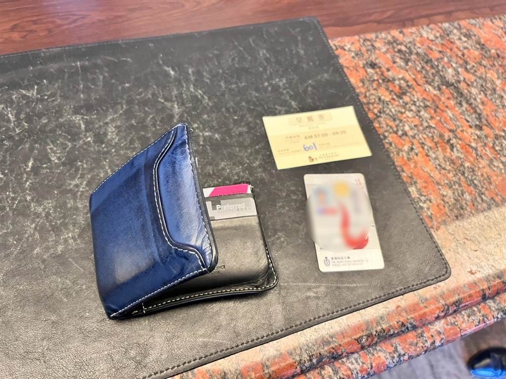 員警檢視錢包裡面有無失主資訊,裡頭現金2300多元,還有多張外國信用卡及學生證等物品,研判失主應是來台旅遊的外籍人士。員警進一步仔細查找,又在皮包夾層發現有房號的飯店早餐券,詢問找線索。