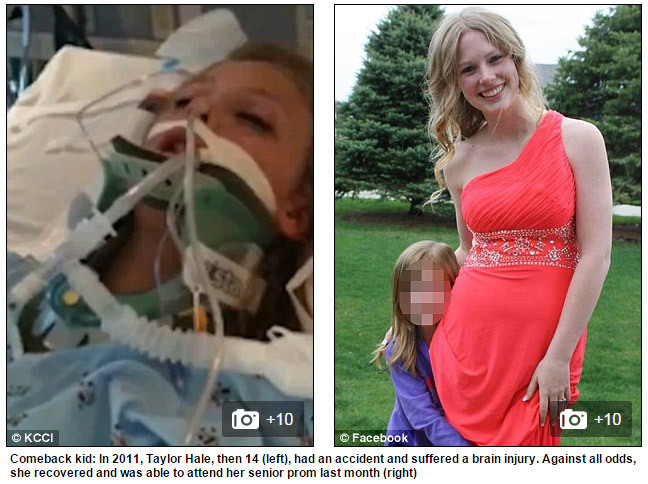 當醫生在2011年9月宣布14歲的泰勒.海爾(Taylor Hale)腦死時,她的父母無法想像她會醒過來,而且康復到可以參加高中畢業典禮。海爾18日就會穿上畢業袍,從愛阿華州的Waukee高中拿到她辛苦獲得的畢業證書。
