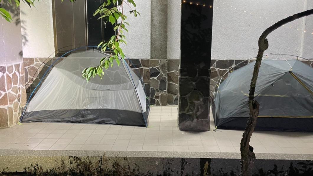 有民眾利用教會的空間搭帳篷。(圖/翻攝自楊始皇臉書)