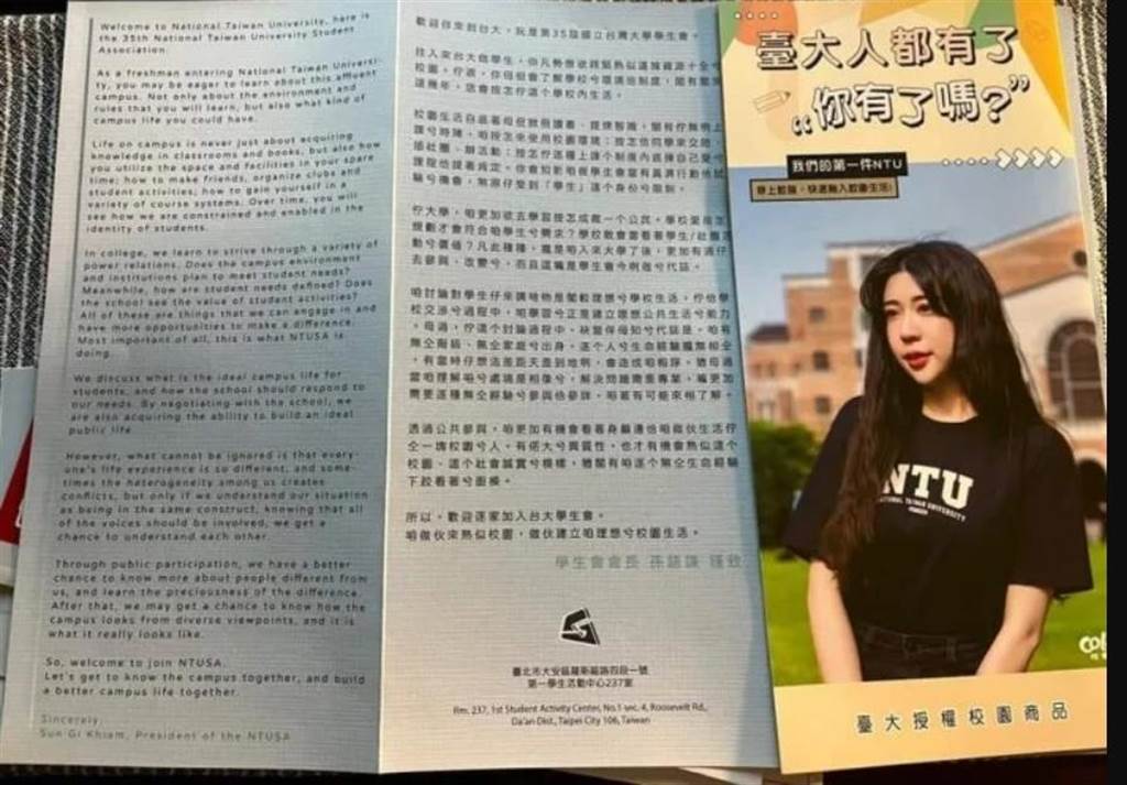 台大學生會發給今年新生迎新傳單,僅有英文版與台語版,引發討論。(摘自Dcard/李侑珊台北翻攝)