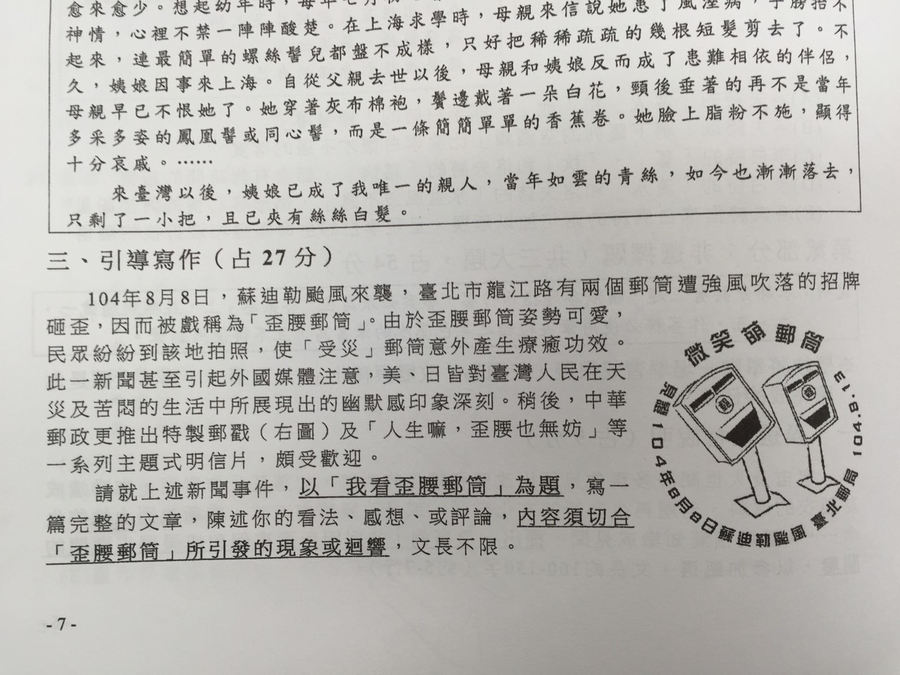 十年來最差!學測作文「歪腰郵筒」2240人零分