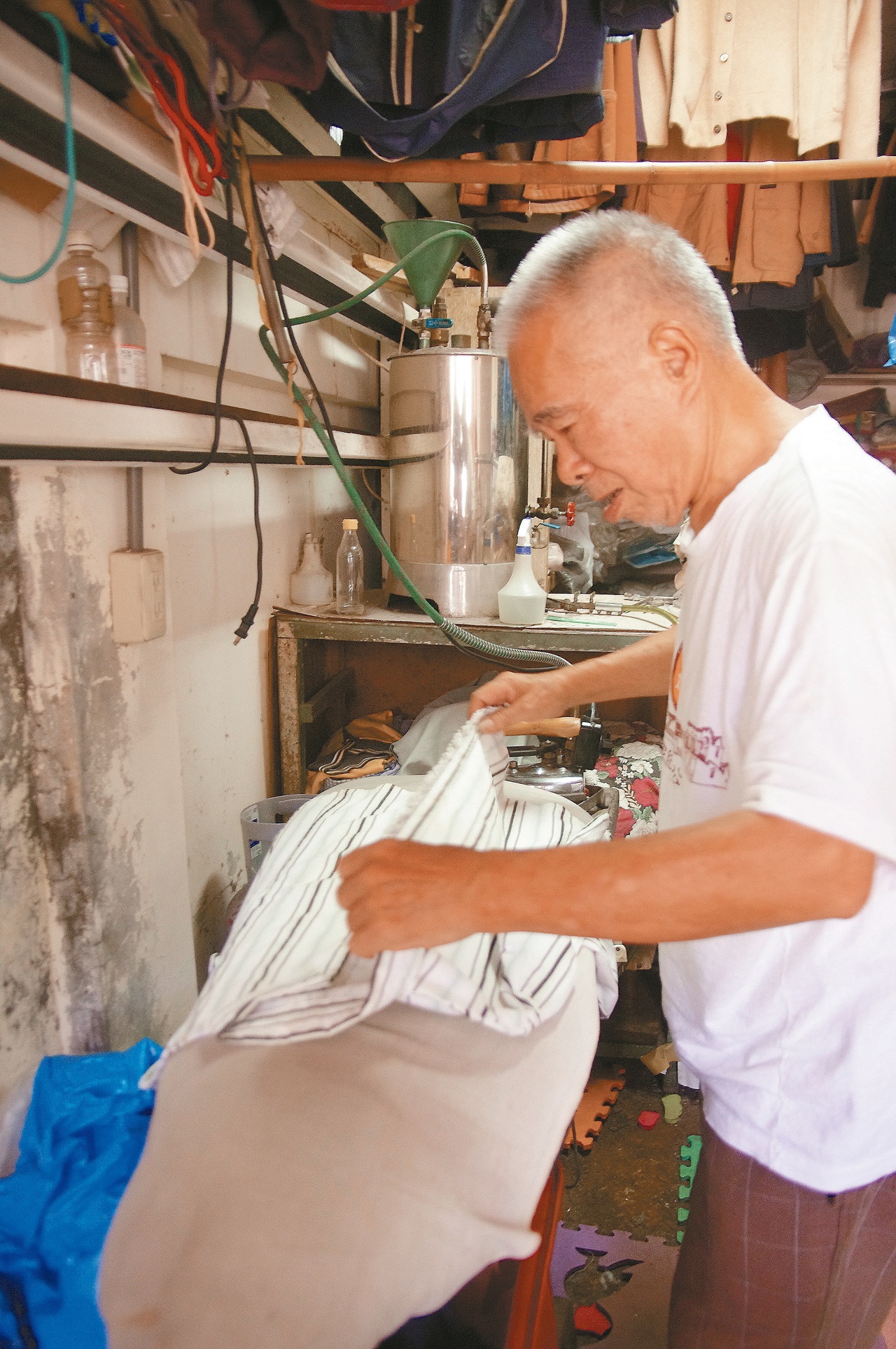 彭老爺爺高齡80歲,燙起衣服來卻一點也不馬虎。 記者連珮宇/攝影