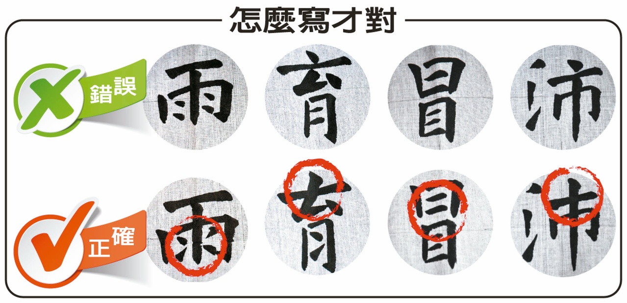 另外「冒」充的「冒」字,象徵用帽子等物品蓋住眼睛,所以上面不是「曰」,而是層層遮蔽的意思。她認為國字體筆順的改變,如能把文字背後的意涵說清楚,眾人的接受度會更大。